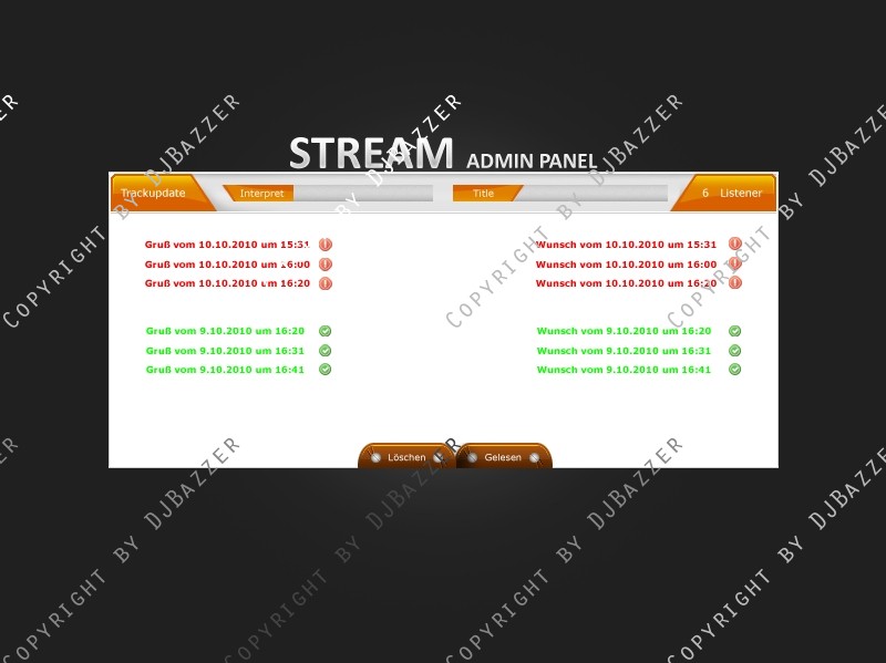 Einmal die Admin Seite, die die Moderatoren/Deejays oder Generell Admins einsehen können, wo Sie die Gruß und Wunschbox auslesen können und Tracklist schreiben können, auch da, gibts eine Listener Anzeige.