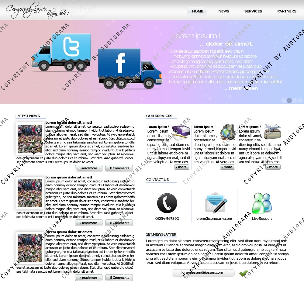 Hinweis: Hierbei handelt es sich nur um das Design, eine Anpassung an ein CMS-System ist nicht im Preis enthalten!