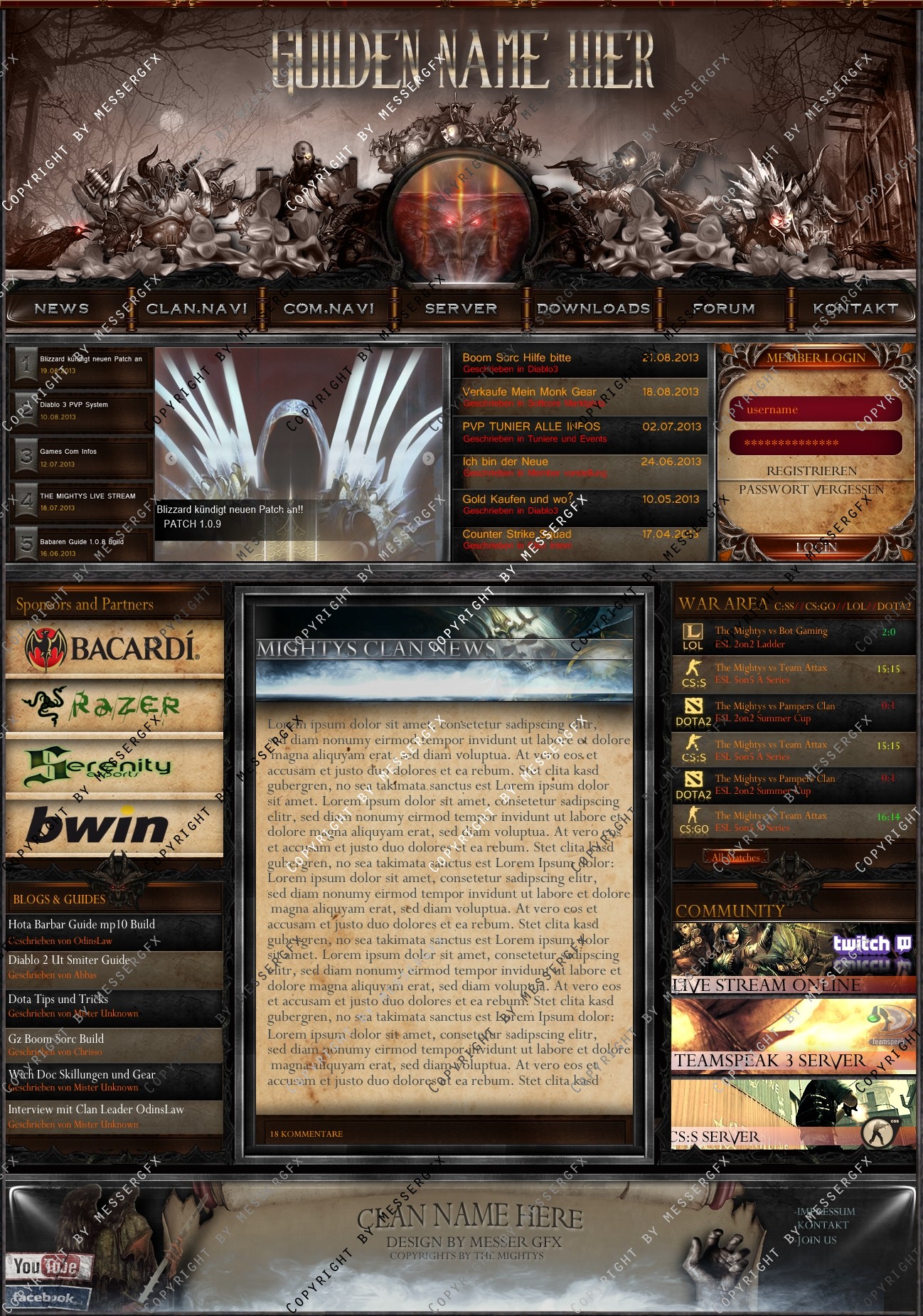 Ein Gilden Design was Wirklich gut zu Diablo 3 Gilden Passt aber es wurde auch für einen Multigaming clan ausgelegt so dass man auch matches usw eintragen kann bei weiteren fragen einfach melden