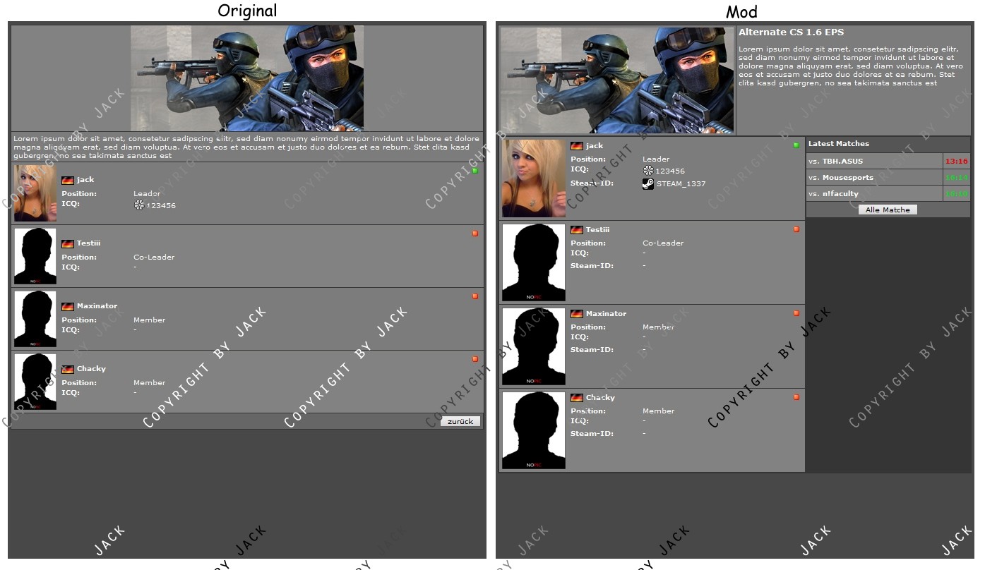 Diese Modifikation verändert die Standard Squadansicht in einigen Punkten.