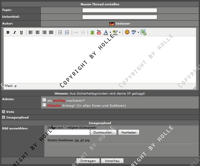+ ...können direkt Bilder im Forum während des Thread oder Post erstellens uploaden