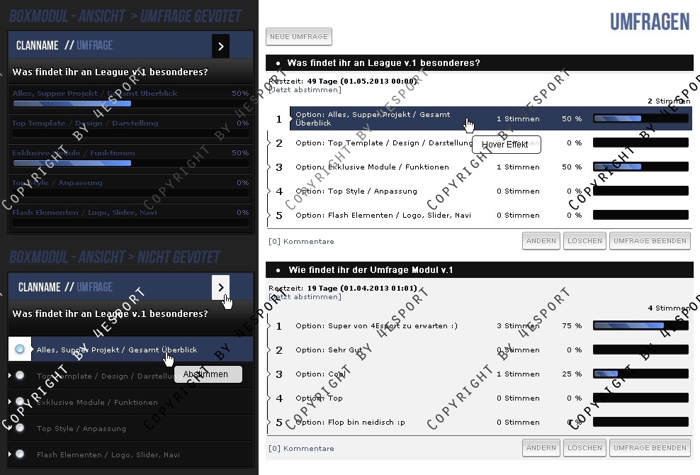 Hier erhalten Sie für ihre Clanhomepage ein Professionelle Poll/Umfrage Modul Erweiterung.