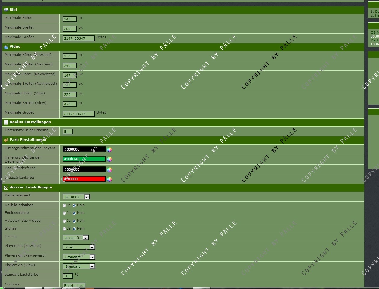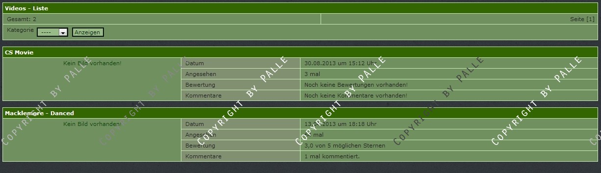 Es werden 3 Navlisten mitgeliefert (letzten X anzeigen, ein random video sowie das neuste video können ausgegeben werden).