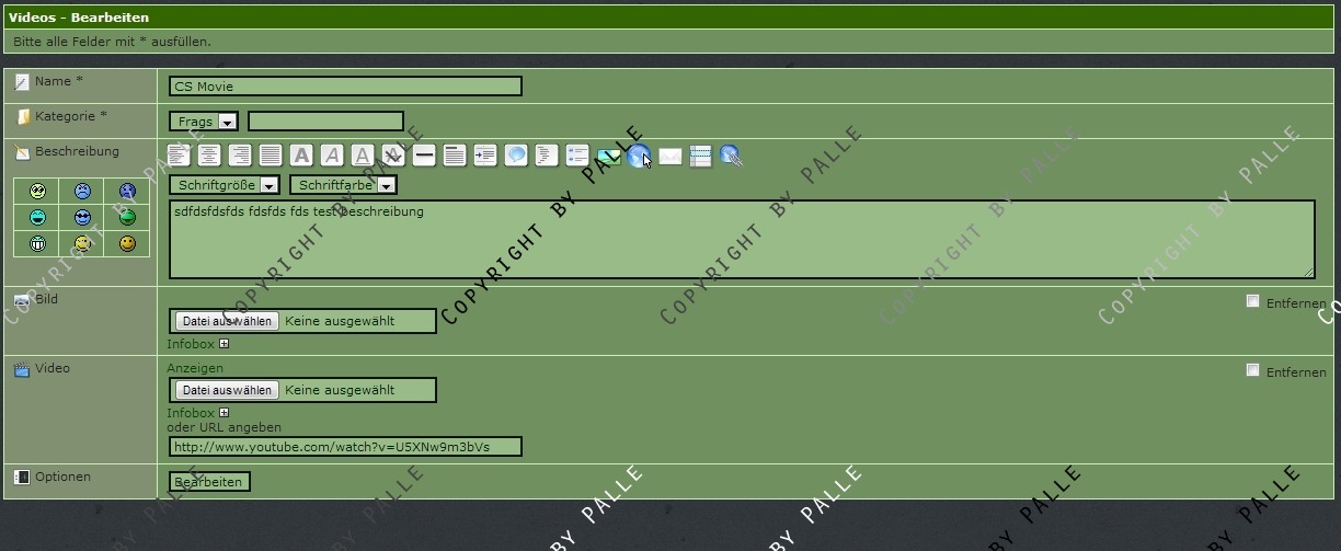 Man kann eigene Videos hochladen (flv Format) oder aber Youtube URLs angeben.