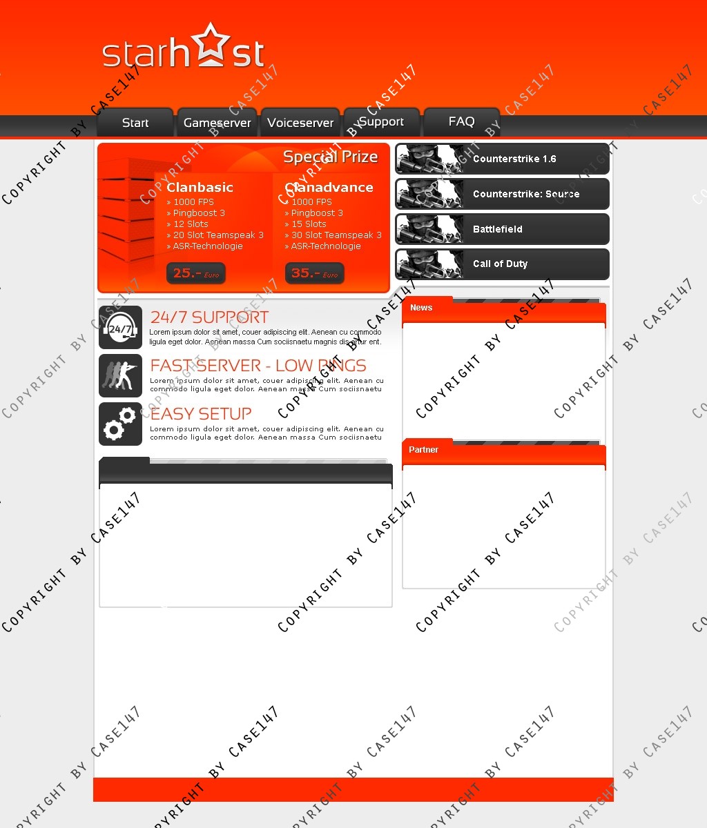 die Hosting-Webseite wurde tabellenlos in HTML/ CSS umgesetzt.